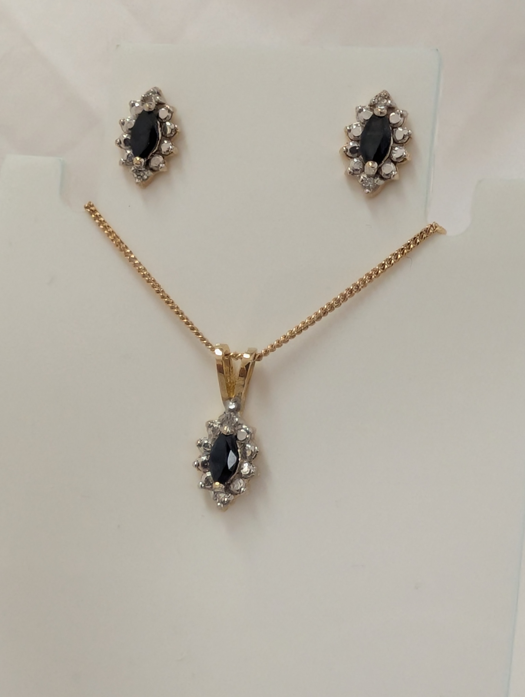 > 10KY Sapphire and Diamond Earring,Pendant and Chain Set "ESTATE" -